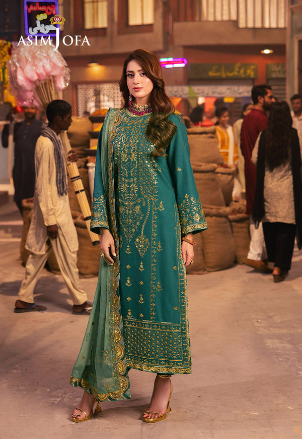 Emerge from the emerald embrace of the forest, a vision blooming with the essence of nature’s timeless beauty in this dark green ensemble. The intricately embroidered shirt is adorned with dual-toned antique gold zari, shimmering like sunlight dappling through leaves. Scattered gold cupped sequins, like fireflies dancing in the twilight, add a touch of ethereal magic. Paired with an airy dupatta, a wisp of green echoing the ensemble’s theme, this outfit is not just celebratory attire, but a serenade sung by the wilderness itself.
